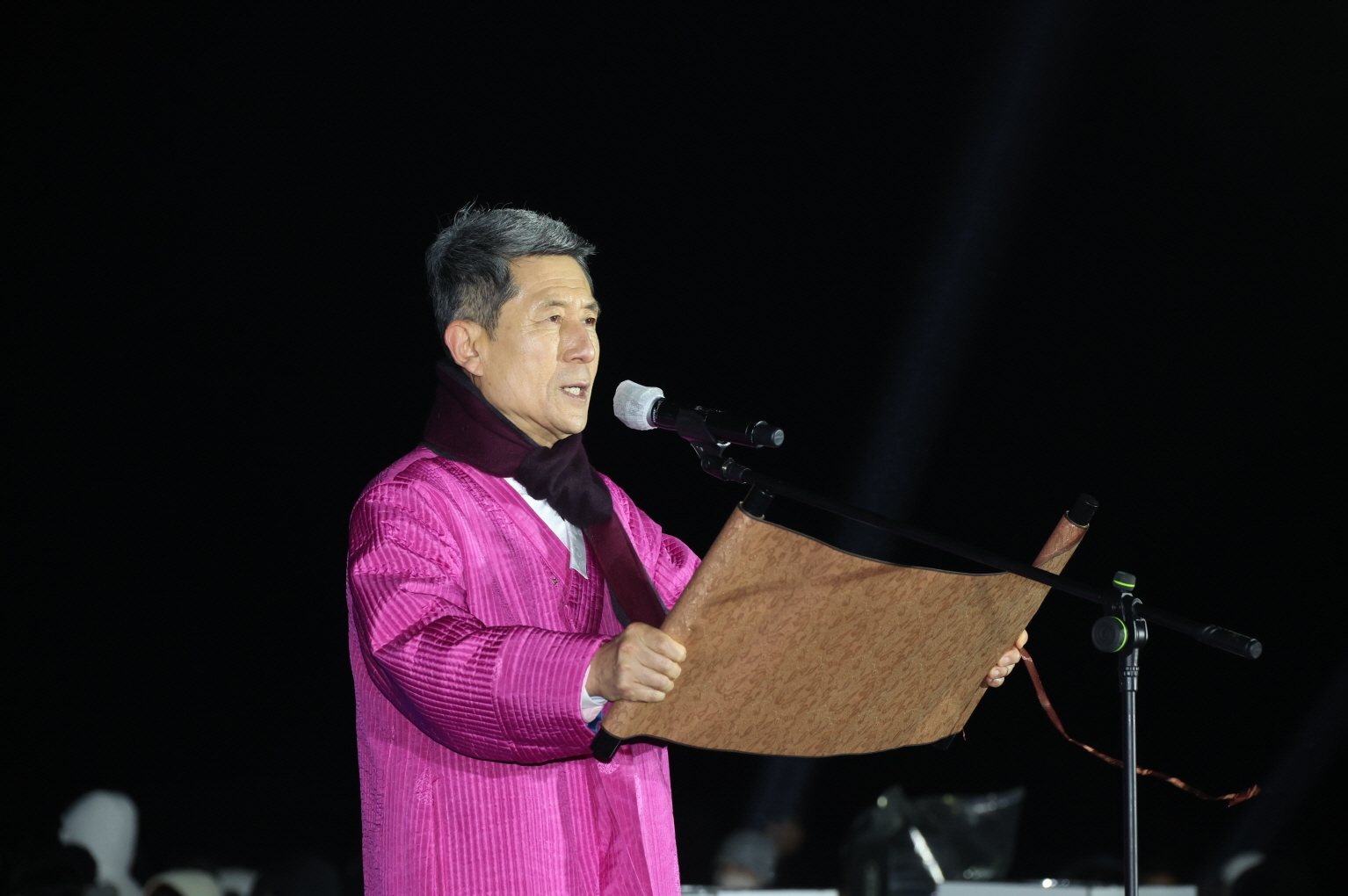 이번 행사에서는 ‘용의 승천, 함께 비상하는 환동해 중심도시 포항’을 주제로 다양한 해맞이 프로그램이 운영됐다. 1일 오전 6시 45분부터 진행한 ‘신년 대북 공연’을 시작으로 새해 인사, 사자성어 강독, 각종 퍼포먼스가 이어졌다.