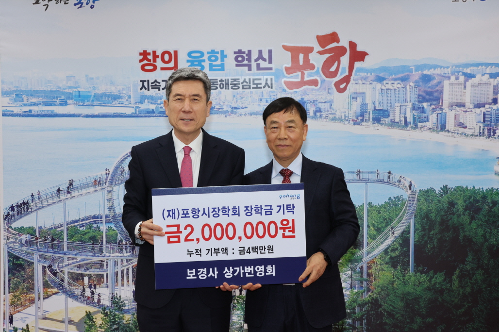 내연산 건강먹거리 특구 상가번영회, 포항시 인재 육성 장학금 기탁