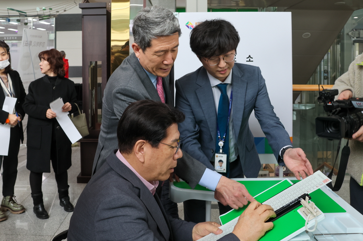 - 장애인 유권자 대상으로 새롭게 도입된 레일버튼형 특수 기표용구 체험