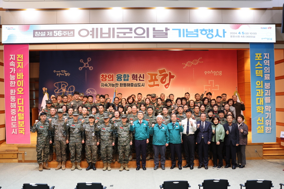 포항시는 5일 ‘제56주년 예비군의 날’을 맞아 포항시 통합방위 협의회(의장 이강덕 포항시장)와 해병대 제1사단(사단장 주일석) 공동 주관으로 기념식을 개최하고, 예비군의 노고를 격려했다.