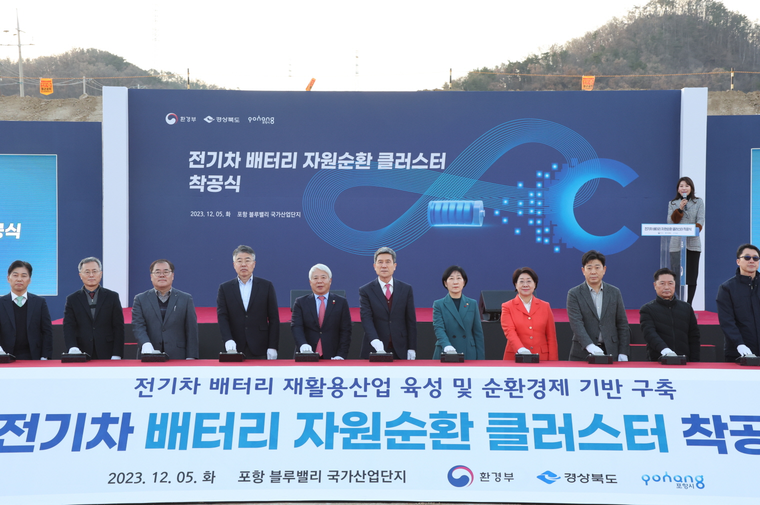 포항시는 5일 포항블루밸리 국가산단에서 전기차 배터리 순환 경제의 국가 기반 구축을 위한 ‘전기차 배터리 자원순환 클러스터’ 착공식을 개최했다고 밝혔다.