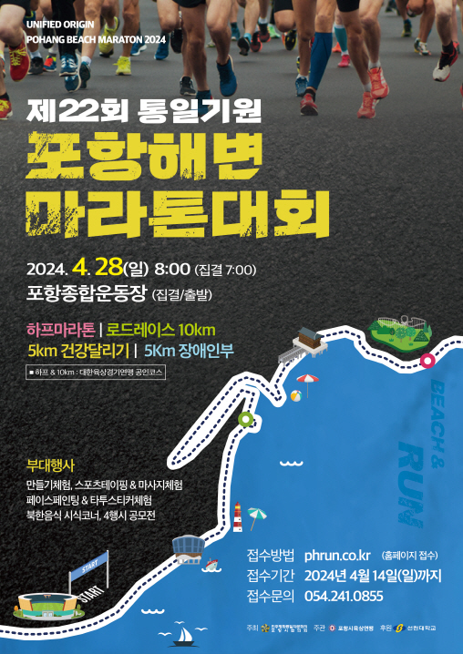 포항시는 ‘제22회 통일기원 포항해변마라톤대회’(이하 포항해변마라톤대회)가 오는 28일 포항종합운동장에서 개최된다고 밝혔다.
