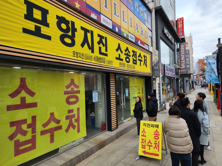 포항시가  지진소송 소멸시효를 앞두고 시민들의 소송 참여에 누락이 없도록 참여를 적극 홍보하고 있는 가운데, 접수 기간이 임박한 시민들이 소송에 참여하기 위해 법률 사무소 앞에서 접수를 기다리고 있다.
